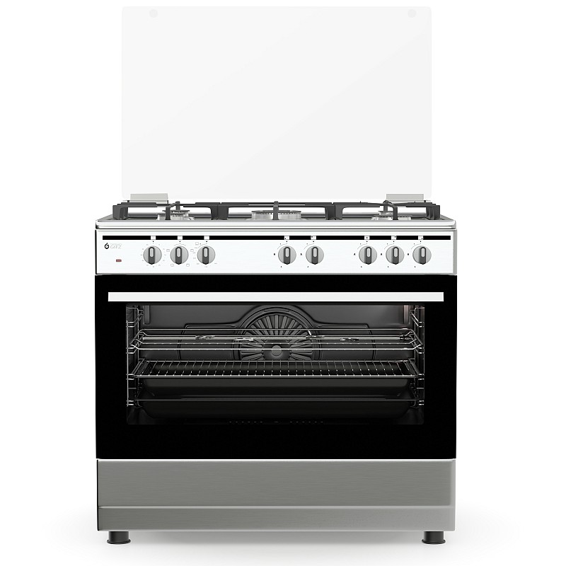 Θερμικα ασφαλείας, Γυάλινο καπάκι, Πόρτα με διπλό κρύσταλλο αποσπώμενο, Χειρολαβή αλουμινίου, Χρονόμετρο μηχανικό, Ράγες χρωμίου, Σχάρες εστιών μαντεμένιες, Διασπορείς εμαγιέ ματ, Σούβλα*, Ανεμιστήρας στον φούρνο*